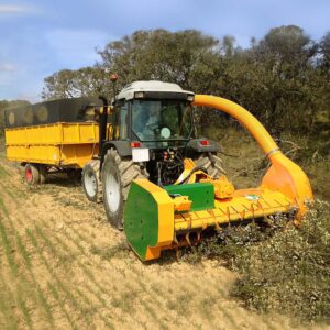 Macchina trinciatrice SERRAT che recupera il trinciato dei residui da potatura dell’ulivo, frutti secchi e residui forestali, ecc